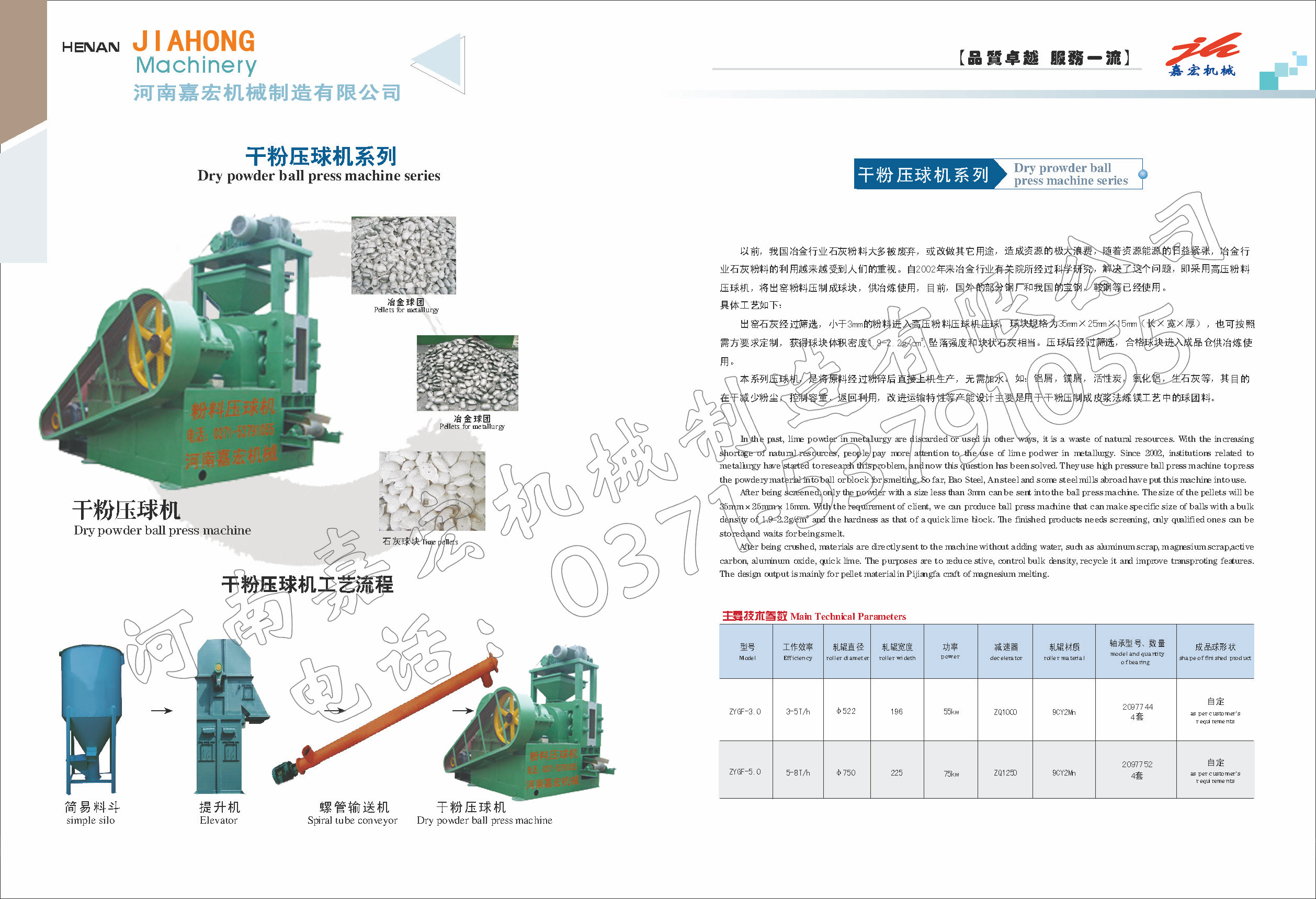 干粉壓球機可以將石灰粉料壓制成球,供冶煉使用,具體工藝如下: